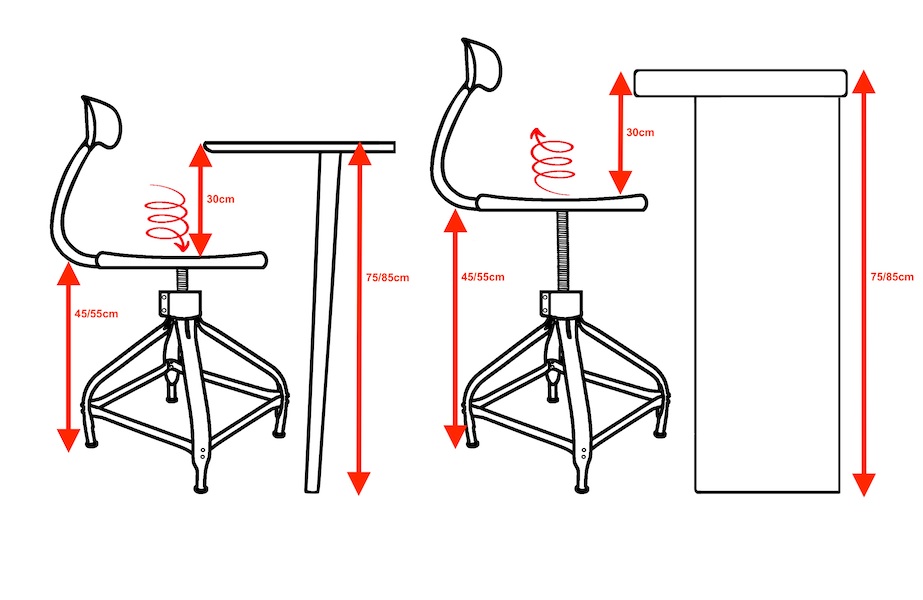 Voici une règle pour bien choisir la hauteur de votre siège:Il faut environ 30cm entre l’assise et la hauteur du plateau pour être confortablement installé.Si votre table/Bureau est entre H75cm et 87cm; les chaises « Dactylo » Nicolle® H45/60 seront parfaites.